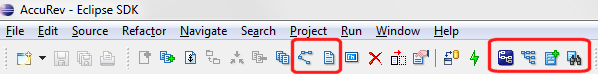 The highlighted groups of buttons are for features that are accessible only after access to the AccuRev Web UI has been configured: