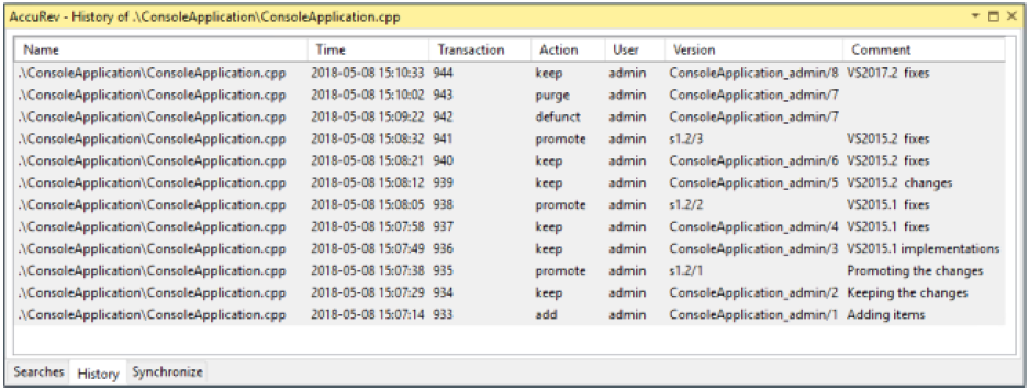 | Action | The kind of AccuRev transaction: keep, promote, etc. |