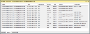 You can select one or two transactions from an item’s history, then invoke an AccuRev command from the selection’s context menu: