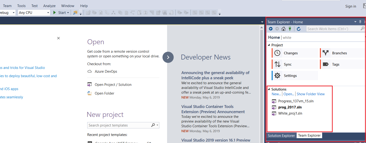 If the cloned AccuRev stream has a solution project, then clicking the cloned repository will cause the solutions to be listed.