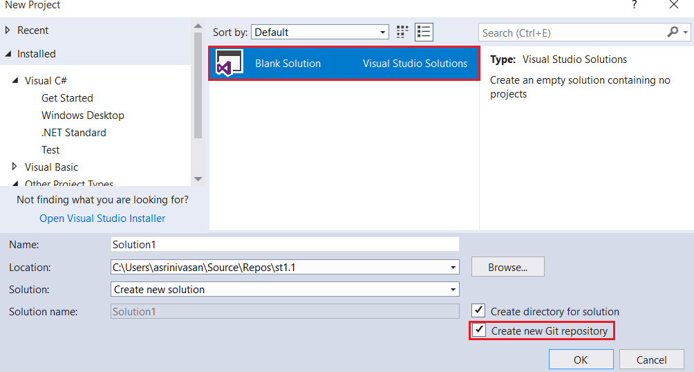 If no solutions or files are listed for the cloned repository, the next step is to create a solution project and add files to it, as shown below.