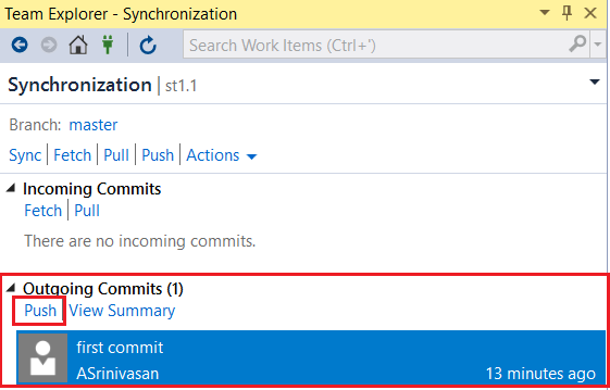 Select the changed file and click Push command as shown below.