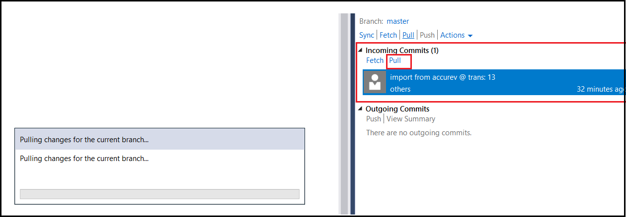 This topic shows how to fetch and download content from a remote repository, and immediately update the local repository to match that content.