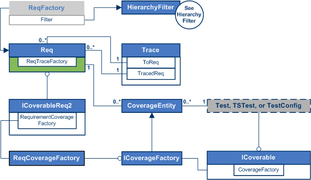 Requirements can be linked to the tests and test instances that are designed to verify that the requirement has been met. The CoverageEntity object links the requirement to the other entity.