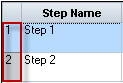 Displays steps that are included in the selected component. Each row in the step grid is numbered sequentially. Example: