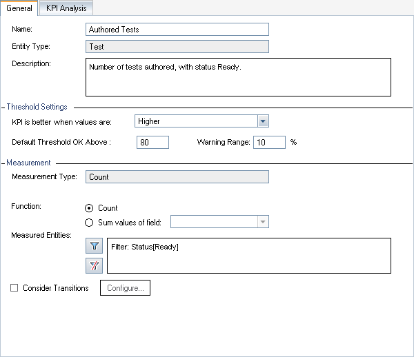 Opens the Configure Transitions dialog box, enabling you to define how field changes are counted when measuring KPI values.