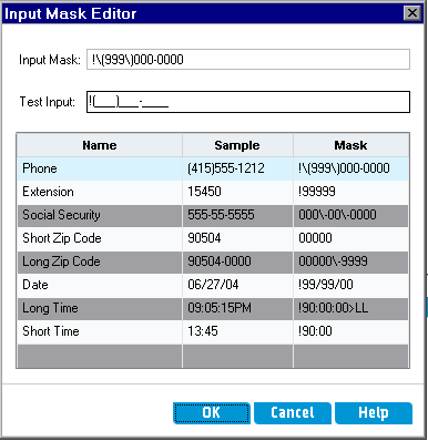 For example, to prompt the user to enter a phone number, you can define the following input mask: