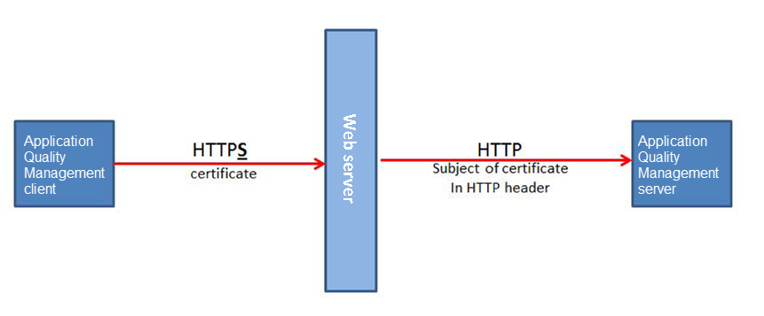 OpenText Application Quality Management supports external authentication, where a reverse proxy positioned in front of OpenText Application Quality Management is configured to support external authentication. After the user is authenticated by the reverse proxy, the authenticated user details are passed to OpenText Application Quality Management, which completes the authentication and authorization process.
