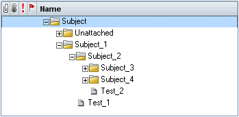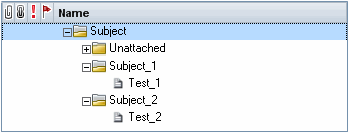 To define subject folders on the same hierarchical level in the test plan tree, use the Close Folder button to place the Close Folder mark directly after the data for each subject folder. This causes a subject folder to be placed on the same level as the preceding subject folder.