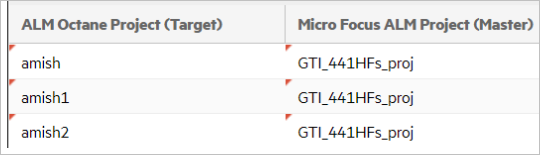 The following example shows a connection that synchronizes three OpenText Software Delivery Management workspaces to one OpenText Application Quality Management project: