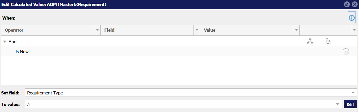 This tells Connect to calculate and set this value when a new requirement is created in OpenText Application Quality Management.