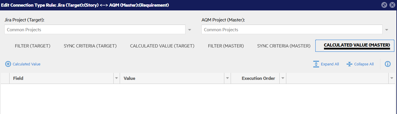 Select OpenText Application Quality Management as the master and Jira as the target data source. Leave the remaining settings as set by default, and click Next.