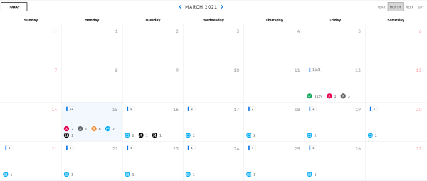The calendar view in Deployment, Administration, and Environment Timelines is updated to provide a more concise summary of events and more precise filtering options. |
