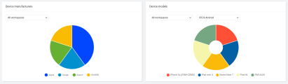 UFT Mobileに、製造元およびモデル別のデバイスの分布を表示する2つのデバイスウィジェットが追加されました。これらのウィジェットは、ラボ内のデバイスに関するより詳細な情報を提供します。この情報は、追加で購入するデバイスやモデル、または特定のワークスペースに割り当てるモデルに関する意思決定に役立ちます。詳細については、Digital Labダッシュボードを参照してください。