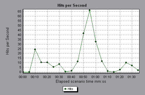 In the following example, the most hits per second took place at 55 seconds into the scenario.