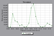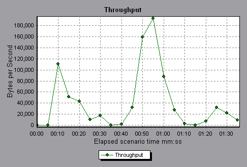 In the following example, the highest throughput is 193,242 bytes at 55 seconds into the scenario.