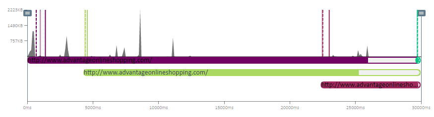 | Clear bar segment | Time during which the page remained open but there was no network traffic. |