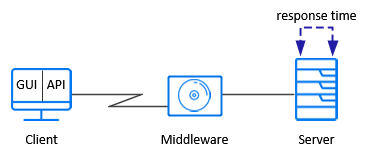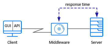 Measuring middleware-to-server response time. You can measure response time from the server to middleware if you have access to the middleware and its API. You can create Vusers with the middleware API and measure the middleware-server performance.