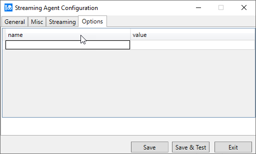 The Streaming Agent Configuration tool opens automatically after the agent installation. To run the configuration tool manually at any time, go to Start > <product-path> - Streaming Agent, right-click Configure Streaming agent, and select Run as administrator. On the General tab, enter the following: