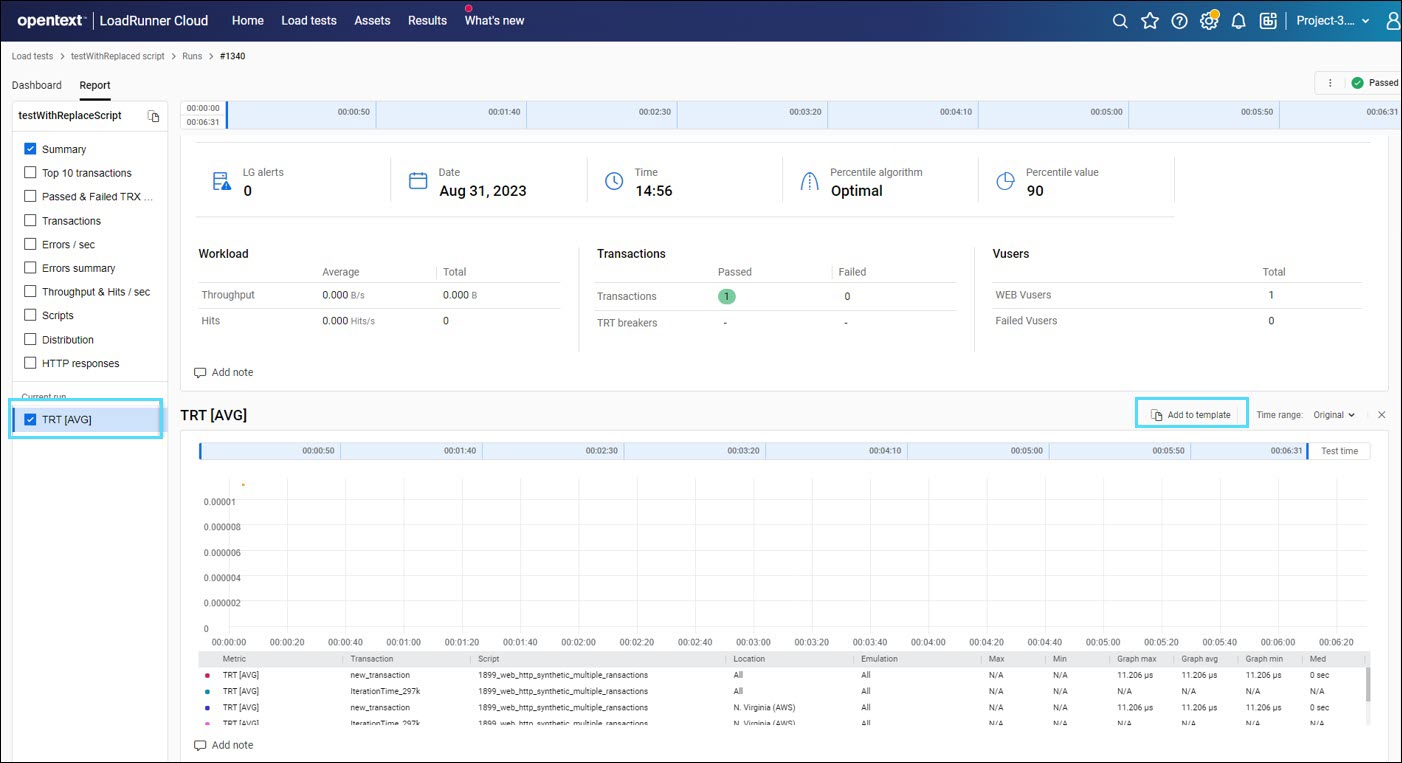 Adding additional transactions to a template. For example, if you created a snapshot for a dashboard graph for the current run, and you want to include this in the template.