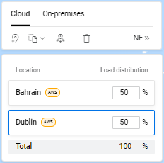 In the Cloud tab, enter the load distribution percentage for all locations. The total distribution must equal 100 percent. To distribute Vusers evenly across locations, click the Distribute evenly button