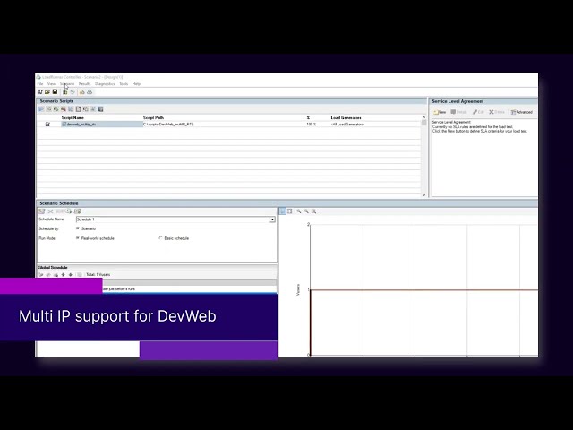 The Multiple IP feature is now supported when running DevWeb tests. This feature enables the simulation of multiple Vusers using different IP addresses, originating from a single load generator. In addition, there are new DevWeb API functions that give you more control over IP address management. For details, see Assign IP addresses to Vusers. |
