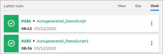 If this is the first run for the test using ScalUP, the DevWeb script folder is uploaded to OpenText Core Performance Engineering, and the test is given the label Autogenerated_<script name>. If a test with the same name already exists, the script is updated and used for the test run.