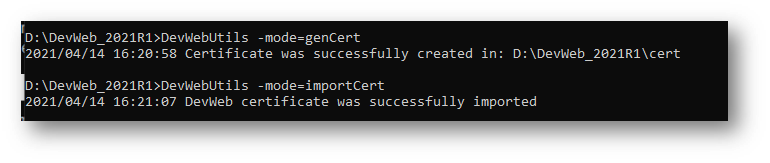 DevWebUtils.exe -mode=genCert -certPath=<output_dir_path>