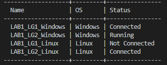 After running the command, a table of OPLG machines is displayed in the terminal window: