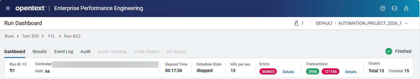 The ID can be used together with the test name to identify the run in OpenText Enterprise Performance Engineering.