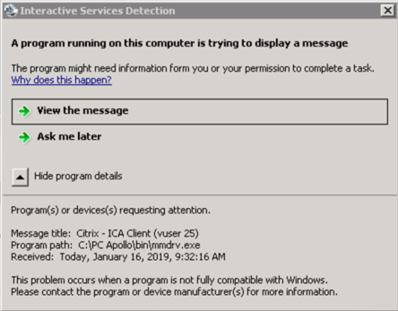 Solution: Deactivate or stop the Interactive Services Detection process.