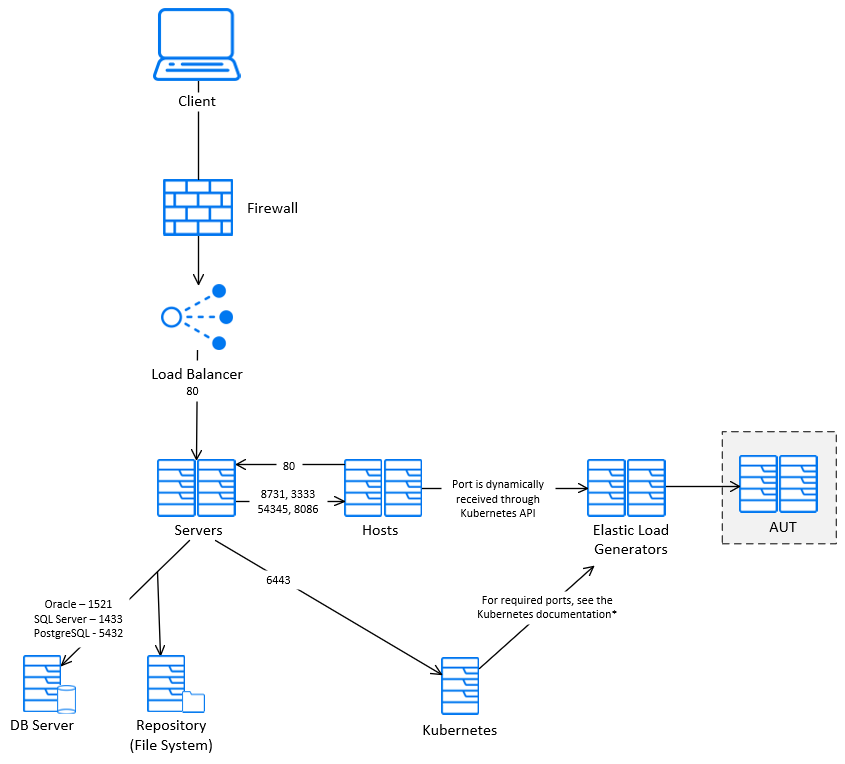 The ports used in this diagram are the common HTTP ports. You can configure the cloud load generator ports as required.