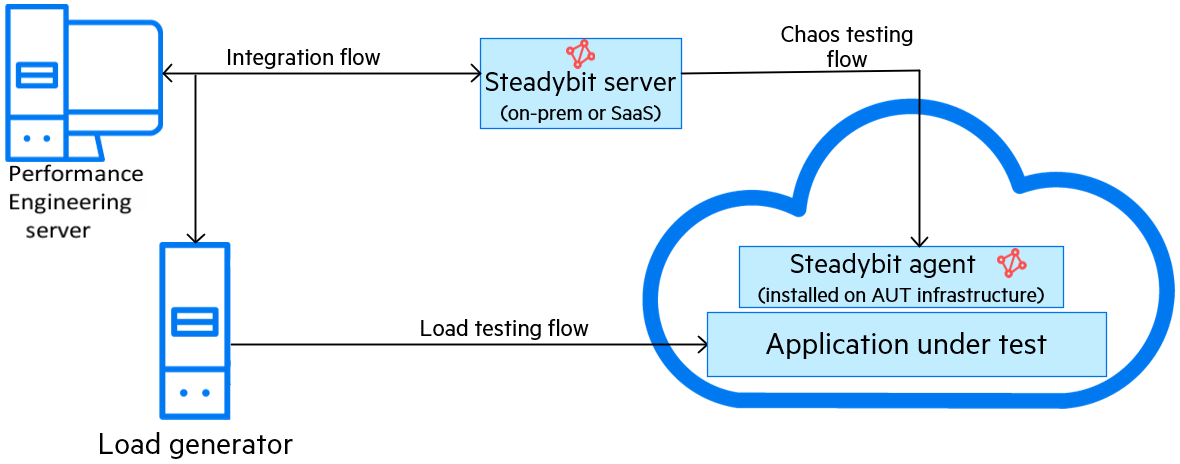 The Steadybit agent must run on the AUT machines. Integrated Steadybit APIs are then used to coordinate the chaos testing.
