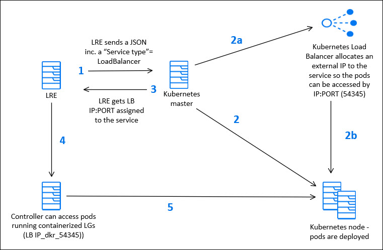 Define how Kubernetes containerized load generators are accessed. You can now connect to pods (containerized load generators) through a node port or a load balancer using an external IP.