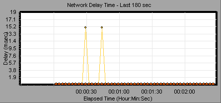 To measure network performance, the Network monitor sends packets of data across the network. When a packet returns, the monitor calculates the time it takes for the packet to go to the requested node and return. This time is the delay which appears in the Network Delay Time graph.