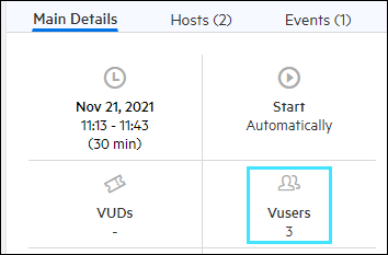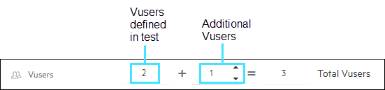 Vusers If you have a linked test, it displays the number of Vusers that are defined in the linked test, and any additional Vusers that you want to add during the test. You can add additional Vusers to the test by clicking the number field.