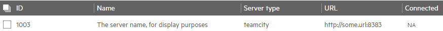Note: When creating CI servers directly from within the ALM Octane UI, plug-ins make sure that the CI server is "connected." Because this CI server was created with the REST API, it is shown as NA. This is not a problem when working with the REST API for limited functionality. Continue working as usual.