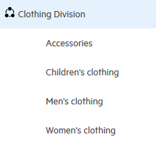 A company website has a shared space for a clothing division. This shared space has four associated workspaces: