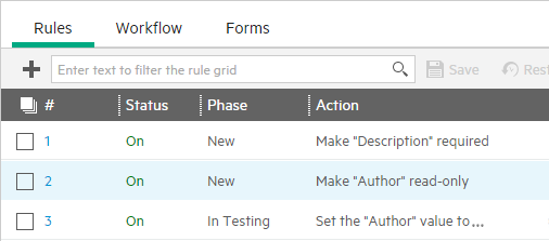 The Phase column in the grid shows the phases for which you created the rule. These rules do not run for any other phase.