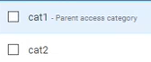 In the Data access categories field, categories that have been assigned to an item's parent are given the suffix Parent access category. This indicates that these categories are relevant to the current (child) item. In the following example, a root requirement has two categories assigned to it and its child has only one. The available categories in the third level of the hierarchy are shown with the suffix: