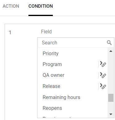 Note: The cross-field condition only applies to single reference fields, such as release, owner, and phase; it does not apply to multiple reference fields, such as application modules and tags.