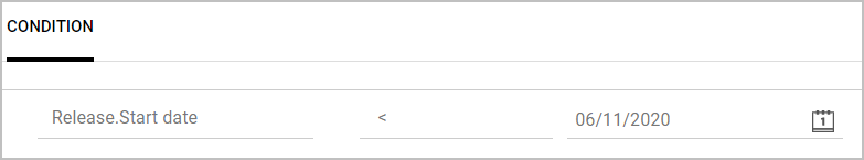 . You set a cross-field condition just as you would set a cross-field filter.In the following example, the condition was set to any release preceding 06/11/2020.