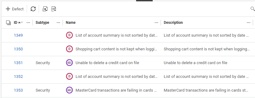 Example: A dynamic label is applied to defects with the subtype Security. All defects with the subtype Security are now displayed with a custom label and icon.