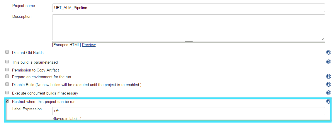 - Define the OpenText Functional Testing machine as an execution node on Jenkins. For details, see the section on execution nodes in the Application Automation Tools wiki page.