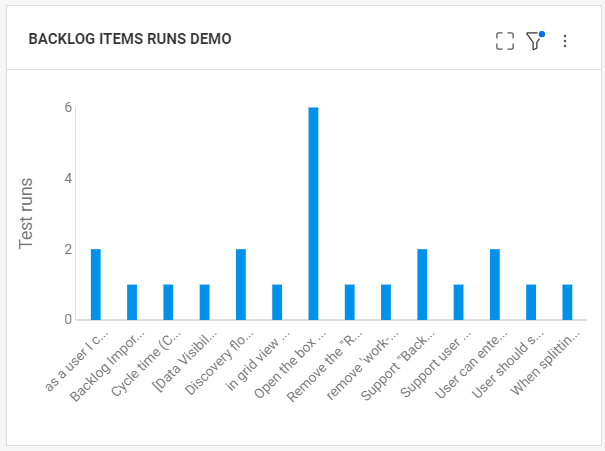 On the Backlog module Overview tab, and the Dashboard module, view test run results by adding different widgets, including: