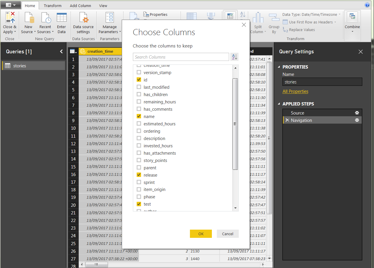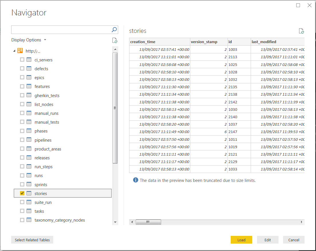 In Power BI, set up the data feed for OpenText Software Delivery Management with OData. For details, see Example: Access data using Power BI.