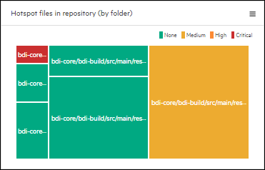 After you Set up the hotspot dashboard widget, the widget displays a heatmap of your code base folders, highlighting areas by hotspot level. The hotspot level of a folder is the average hotspot level of the files in that folder.