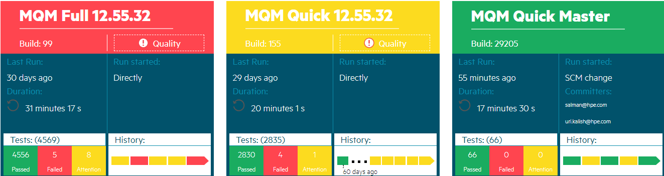 This view is suitable, for example, for displaying on a group plasma screen. This enables the whole group to view the overall build status and quality.