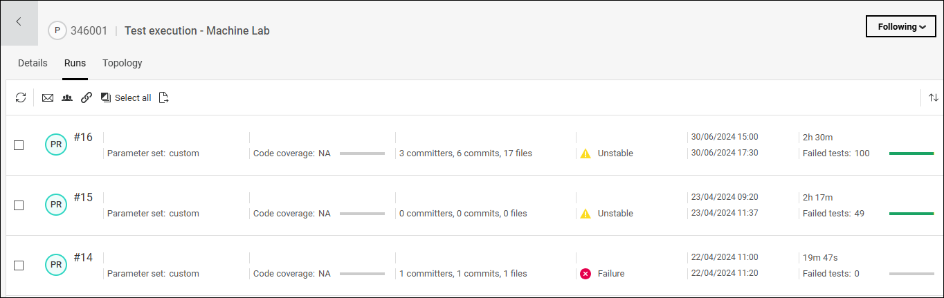 If you select Latest and a newer run becomes available, you need to refresh the display to see the newer run. If you are investigating a failure, this helps you stay in the failure context.