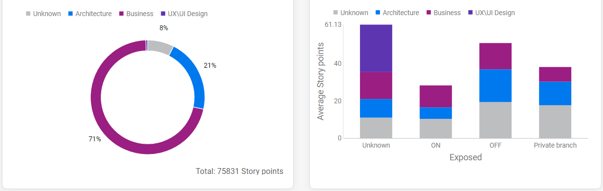 A feature's estimated story points vs. the actual story points per team or sprint.